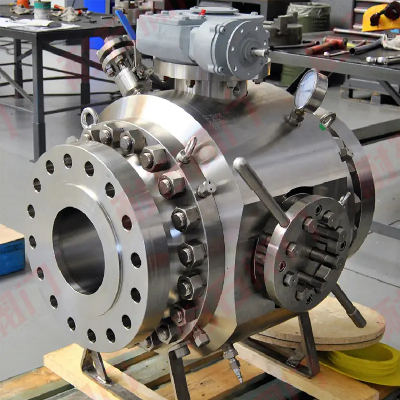 耐石清管阀是一种 T 型固定式球阀,专为石油和天然气长输管道而设计。它建立在固定球阀设计的原则之上,具有改进的功能和创新的设计。该阀通过将球旋转 90° 来打开和关闭阀门,利用双活塞效应来确保可靠的密封。该设计还结合了双截止和排放功能,允许在阀门完全打开或关闭时从阀腔中排出介质。它保留了固定球阀的所有优点,并且适应性很强。该阀具有一个垂直于主流通道的侧支管,该支管配有一个快开盲板和一个放气阀,以方便清管作。